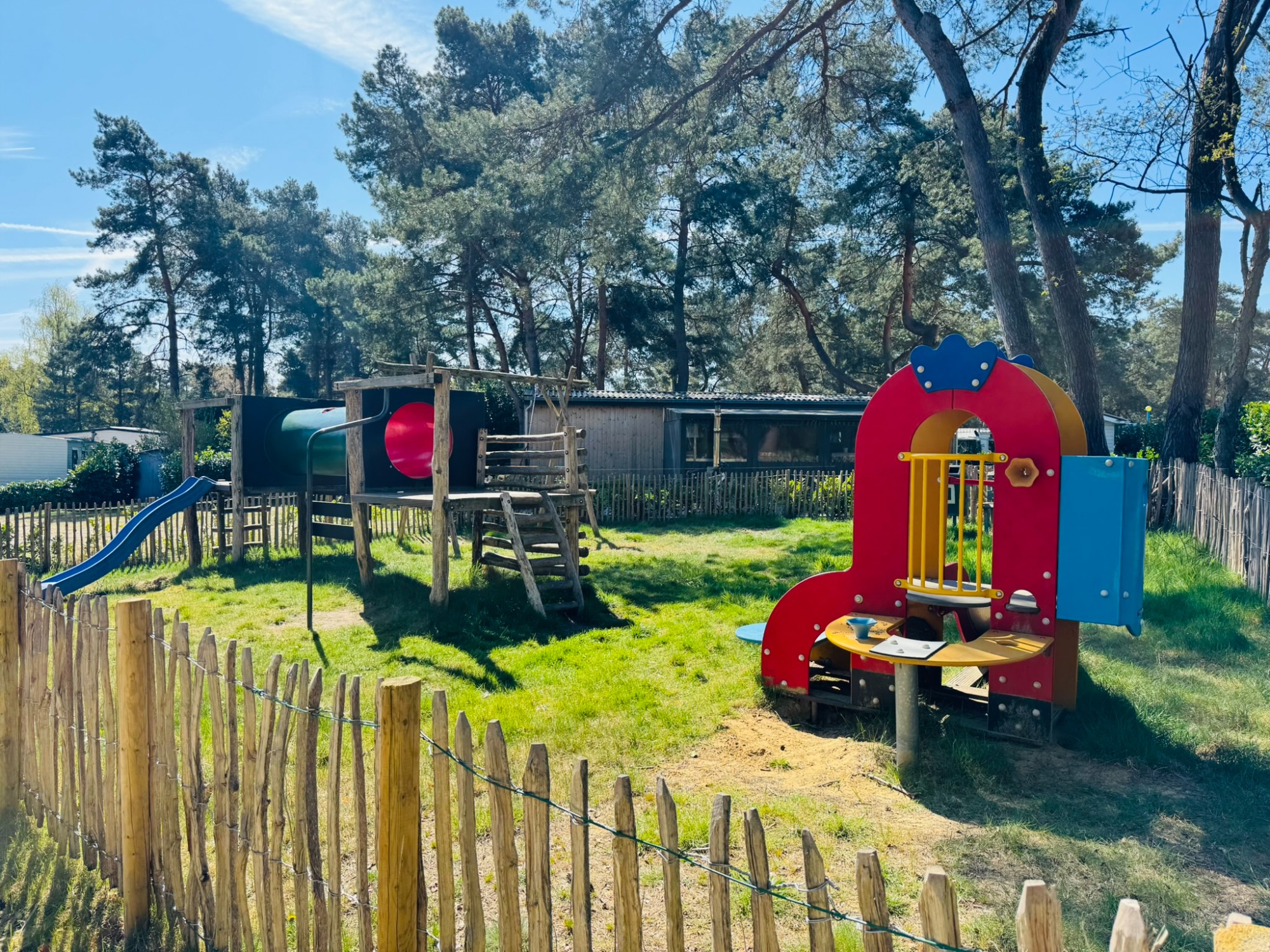 Boshuisje June ligt op een ruim opgezet park met verschillende faciliteiten zoals padelbanen, een speeltuin en een buitenzwembad.